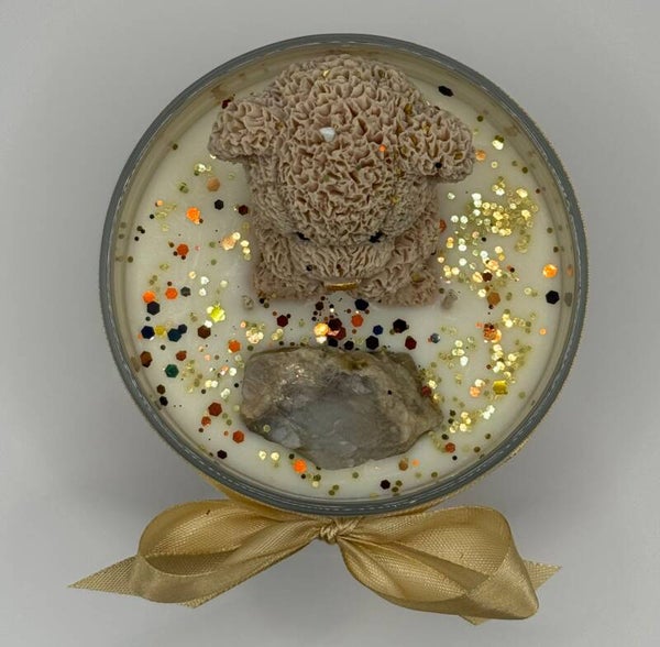 ▫ Lieve teddybeer en goud/bruin glitterdecoratie